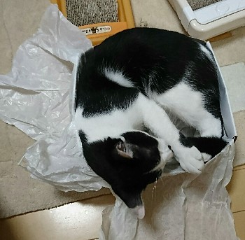 我が家のにゃんこも箱があったらとりあえず入ってみようって感じでしょうか。